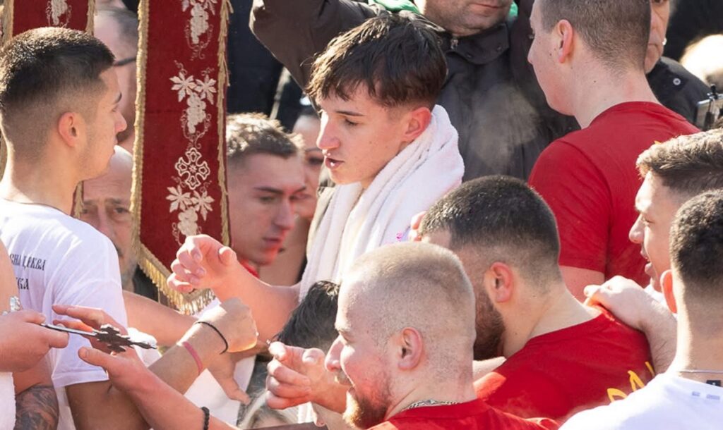 Годинава, светиот крст во рацете на 16 годишниот Христијан Бошевски кој го пронајде во осветените води во храмот „Св. Великомаченик Димитриј“ во Битола.
