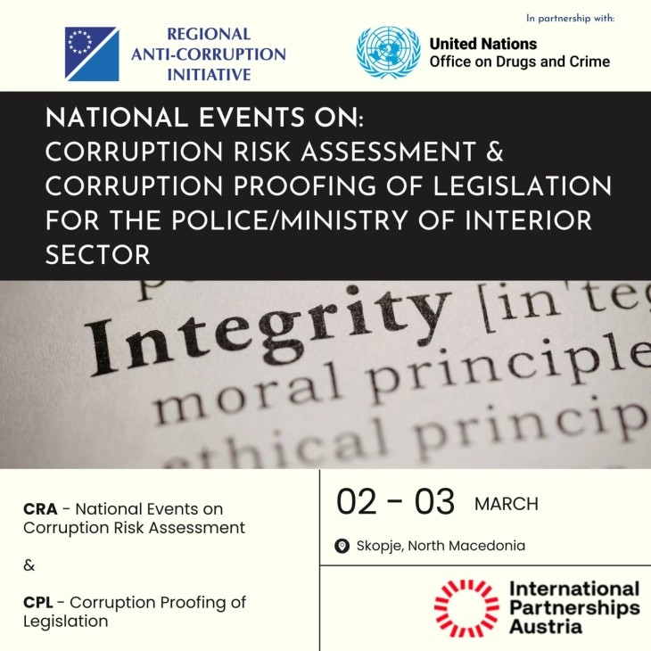 Регионалната иницијатива против корупција (РАИ) денеска во Скопје организира обука за претставници на полицијата / Министерството за внатрешни работи во областа Проценка на ризикот од корупција и Законодавство за проверка на корупцијата.