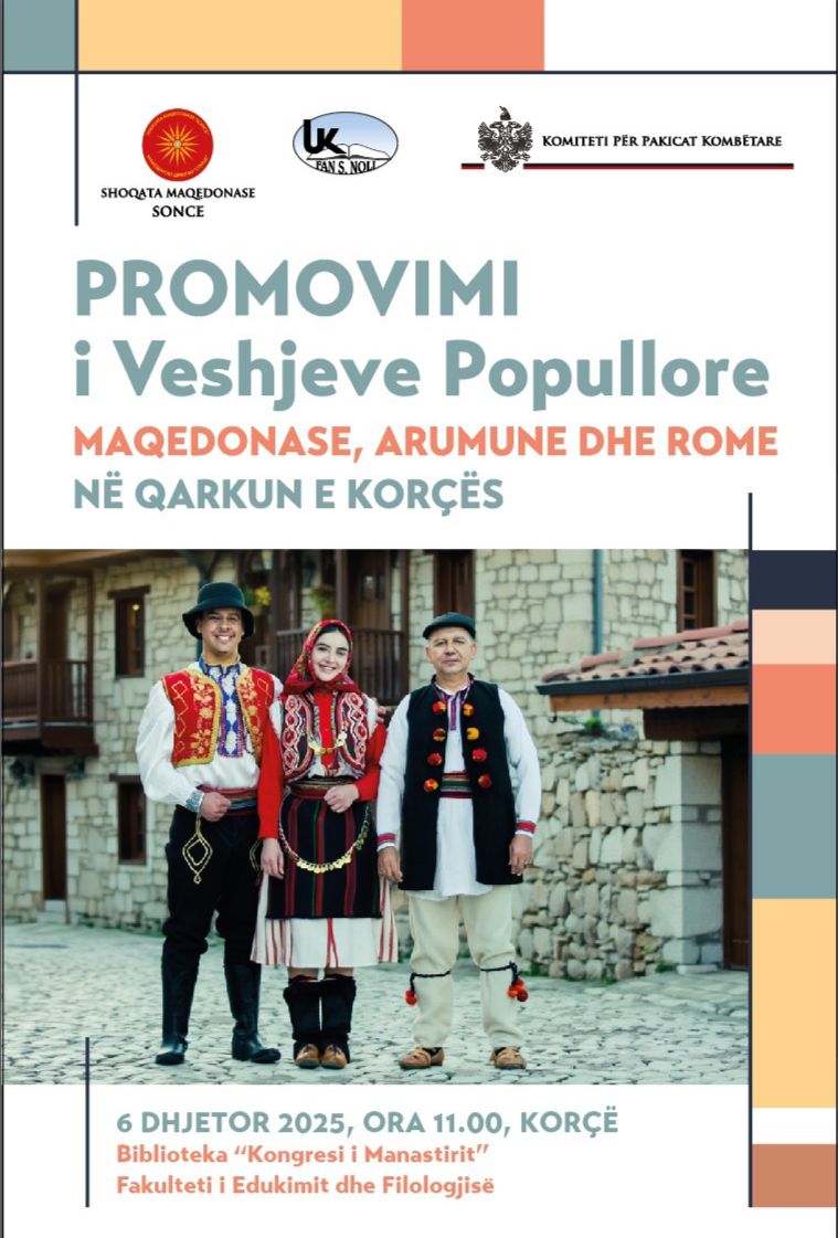 Македонското друштво „Сонце“, во соработка со Педагошкиот факултет, и со поддршка на Комитетот за национални малцинства, го организира завршниот настан на проектот „Создавање традиционални носии на македонското, влашкото и ромското национално малцинство во регионот на Корча“.
