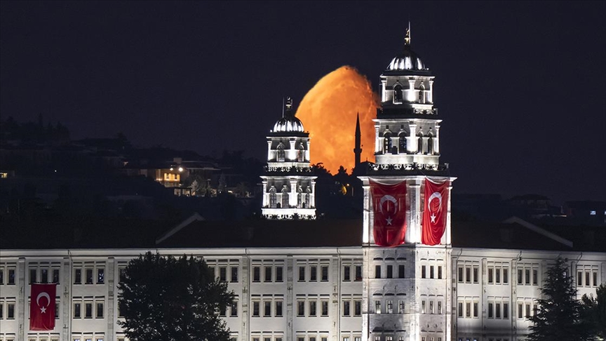 ИСТАНБУЛ (АА) – Спектакуларна полумесечина е снимена синоќа во Истанбул, како го осветлува небото над касарната Селимије, известува Анадолу.