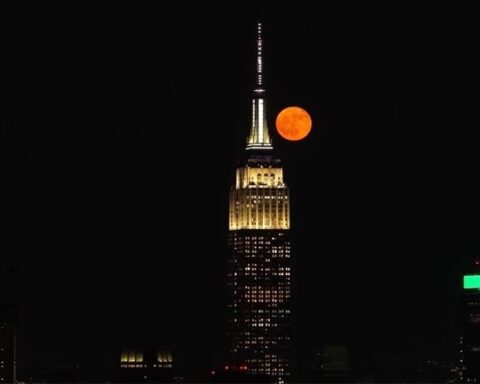 СКОПЈЕ (АА) – Полна јагодеста месечина се издигна на хоризонтот над Менхетен и Емпаер стејт билдинг во Њујорк синоќа, создавајќи спектакуларен поглед над градот што никогаш не спие, јавува Анадолу. Јагодеста месечина