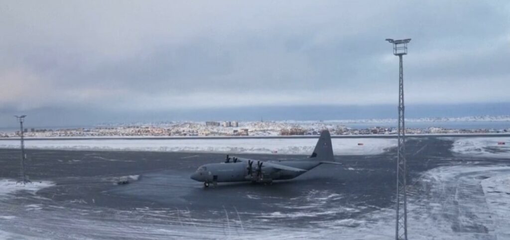 На аеродромот во Нук, Гренланд слета воен транспортен авион на кралската војска на Данска. Со авионот пристигнаа и неколку војници. Каква опрема носат засега не е познато, иако пораките се дека ова
