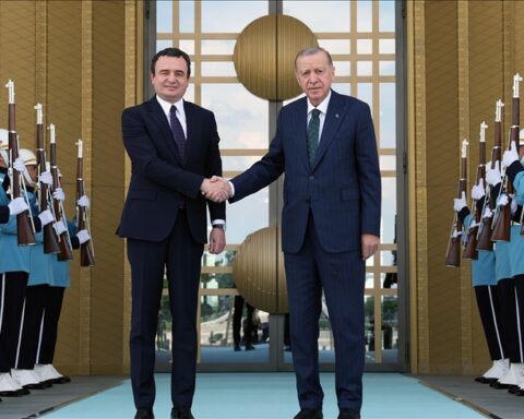 АНКАРА (АА) – Турскиот претседател Реџеп Таип Ердоган денеска во Анкара се состана со косовскиот премиер Албин Курти, јавува Анадолу. Ердоган го пречека премиерот на Косово со највисоки државни почести пред претседателската