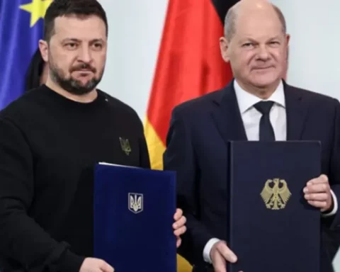 Германскиот канцелар Олаф Шолц и украинскиот претседател Володимир Зеленски денеска во Берлин потпишаа договор за долгорочни безбедносни обврски. „Историски чекор. Германија ќе продолжи да ја поддржува Украина против руската агресивна војна“, напиша