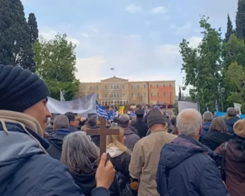 Со грчки знамиња, икони, крстови, транспаренти со пораки, но и говори, голем број граѓани денеска се собраа во центарот на Атина за да го изразат нивното несогласување со законот за истополови бракови,