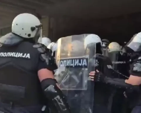 Стотина полицајци се распоредени од ноќеска пред Собранието на Нови Сад каде утрово имаше тензии кога полицијата почна да ги турка граѓаните собрани во блокадата. Еден студент е повреден, а друг беше