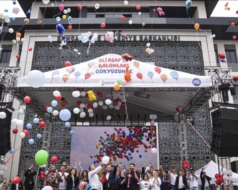 ИСТАНБУЛ (AA) – Илјадници луѓе, кои одговорија на повикот на таткото преку социјалните мрежи, пуштија шарени балони кон небото во Санџактепе, во областа на Истанбул, за да ја споделат среќата на Али