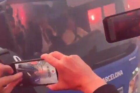 ХАОС ВО БАРСЕЛОНА: Пеколна атмосфера пред натпреварот, навивачите го гаѓаа автобусот на Барса мислејќи дека е на ПСЖ