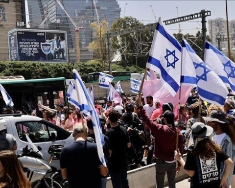 СКОПЈЕ (АА) – Екстремно десничарска група се собра пред Кабинетот на премиерот во Западен Ерусалим, протестирајќи против договорот за прекин на огнот меѓу Израел и Хамас, јавува Анадолу. Демонстрантите носеа симболични ковчези
