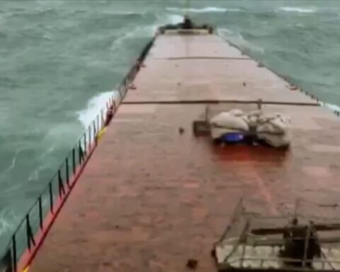 МОСКВА (АА) – Русија започна итна спасувачка операција откако два руски танкери претрпеа големи оштетувања поради бурата што го зафати теснецот Керч, предизвикувајќи излевање на нафта, објавија руските власти денес за државните