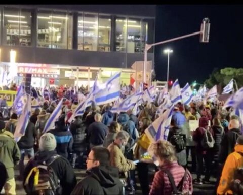 АЛ КУДС (АА) – Илјадници Израелци демонстрираа вчера во неколку градови повикувајќи на смена на владата, што се совпадна со протестите на семејствата на Израелците кои се заложници во Газа, а кои