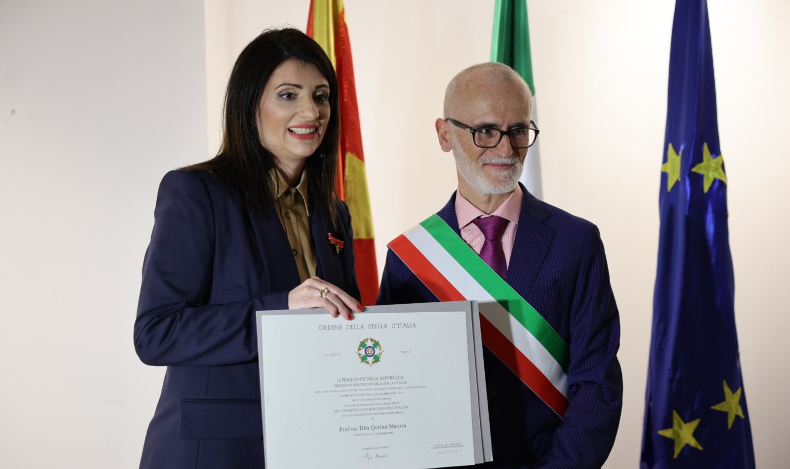 ДИТА СТАРОВА-ЌЕРИМИ ОДЛИКУВАНА СО ОРДЕН „ВИТЕЗ НА РЕДОТ ЅВЕЗДА НА ИТАЛИЈА“