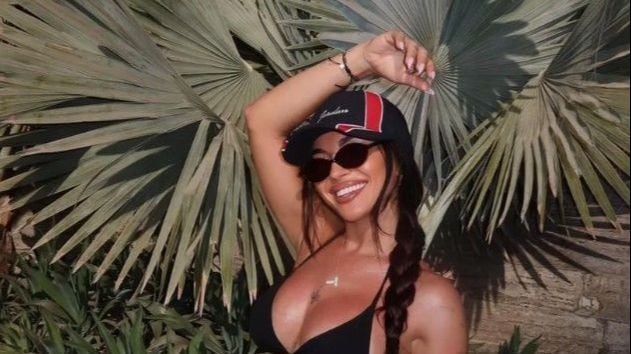 Телотона популарната Џевна  телото блескаше од масло, а бикинито едвај ѝ ги покриваа градите.