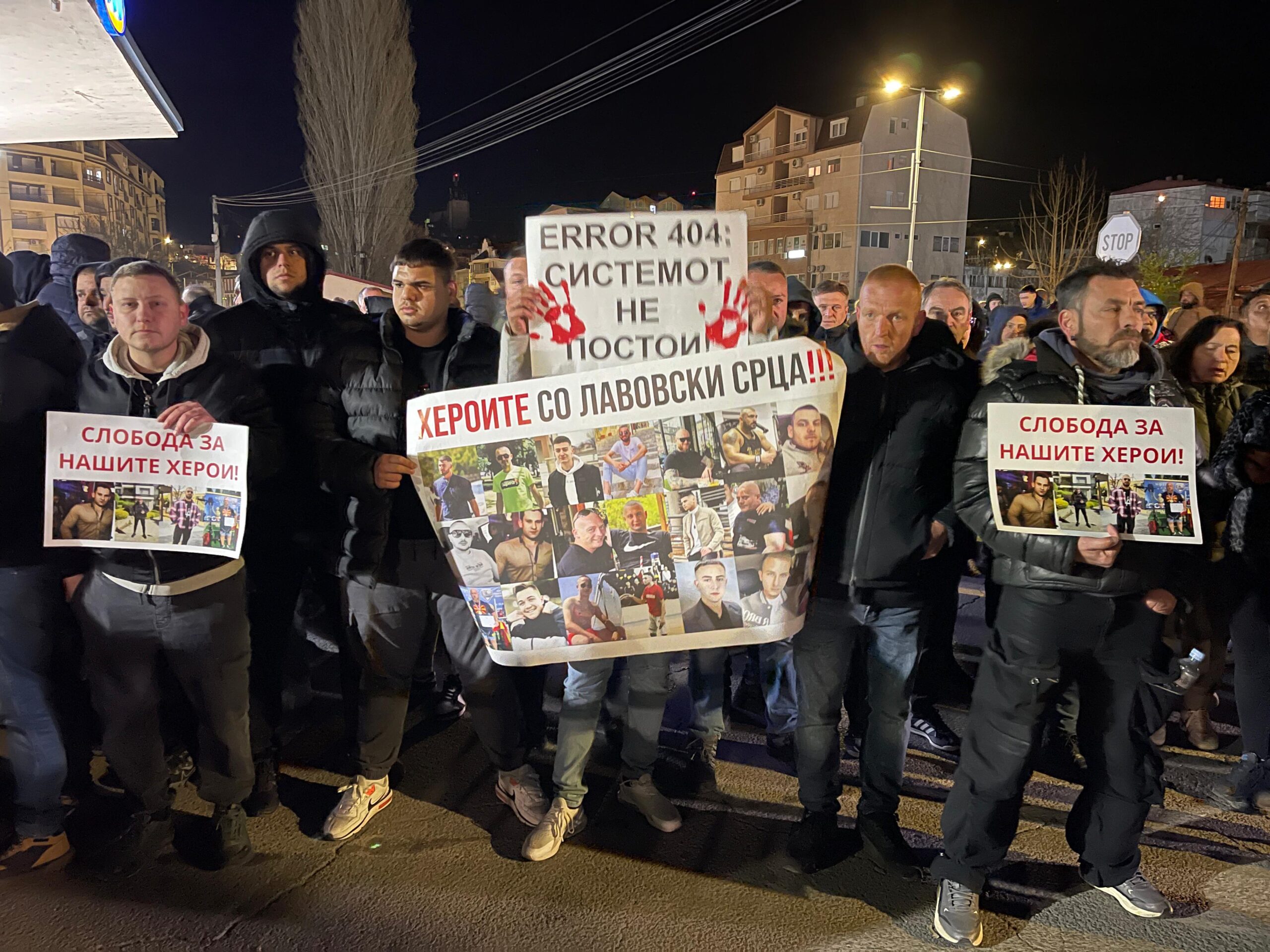 Граѓаните со транспаренти „Слобода за нашите херои“ и „Херои со лавовски срца“ бараат нивно ослободување.