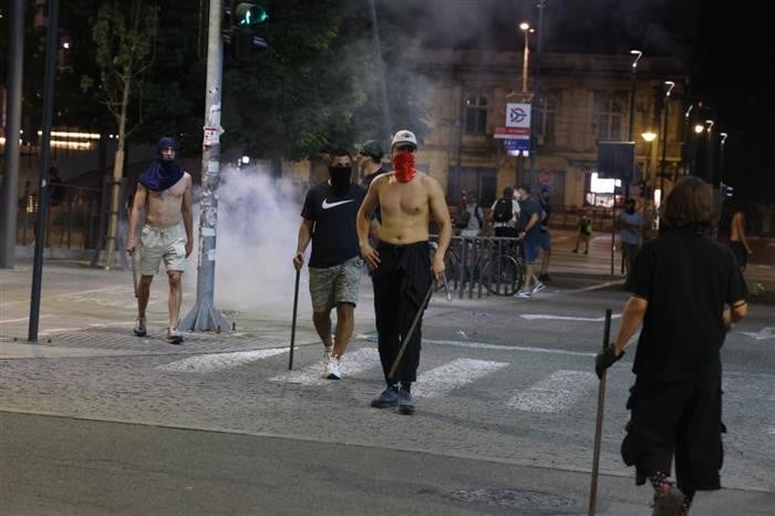 Според надлежните во Србија, синоќа повредени биле шест полициски службеници, а приведените се 56 лица, од нив задржани 16 за насилничко однесување, 35мина, како што информираше тамошното МВР ќе заработат прекршочни пријави..
