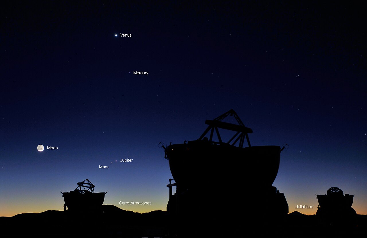 - Двоглед ги гледате сите три во исто поле. Нептун, со сјај +7,8 mag, ќе изгледа како ситна, матно‑сина точка до Сатурн; без оптика останува невидлив.