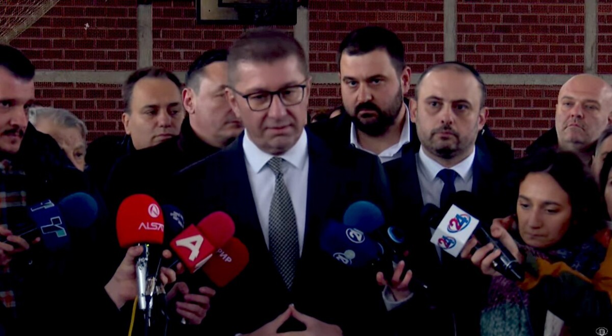 „Најостро го осудувам, сепак претставува чин на агресија, нешто за кое предупредувавме дека ќе се случува, дека ваков тип за обиди за ескалација за креирање на етнички тензии има, и ќе има. Ако мислите дека е изолиран случај, не е. Бидејќи како правдата полека се доближува до криминалците, така тие ќе стануваат понервозни, понетрпеливи и едниствениот начин да го одбранат криминалот е вака. Честитам на навременета реакција на МВР, бирото за јавната безбедност, СВР Скопје, припадниците на МВР кои не дозволија ескалирање, и реагираа во насока на приведување на лица кои го свекрнавеа дражвното знаме. Ќе бидат денеска изведени пред судија, тие ќе бидат обвинети според чкленот 319 каде што затворската казна е од 1 до 3 години затворска казна“, рече Мицкоски.