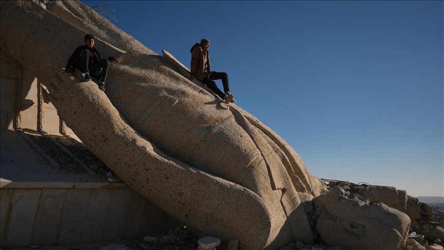 Срушениот споменик на Хафез ал Асад, нем сведок на крајот на режимот на Баас во Сирија