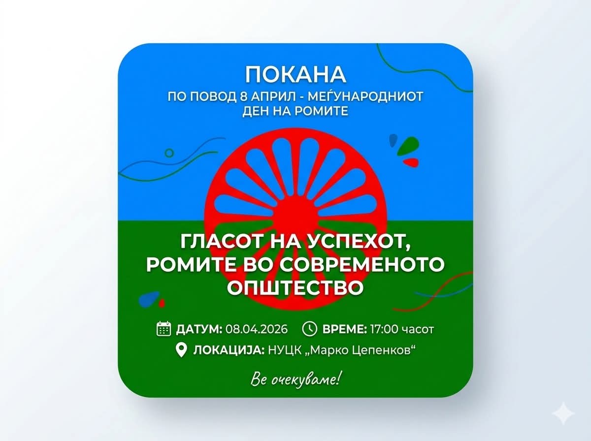 По повод одбележувањето на 8 Април – Меѓународниот ден на Ромите, Општина Прилеп организира настан со наслов „Гласот на успехот – Ромите во современото општество“, кој ќе се одржи утре (среда), 8 април 2026 година, со почеток од 17:00 часот во НУЦК „Марко Цепенков“.
