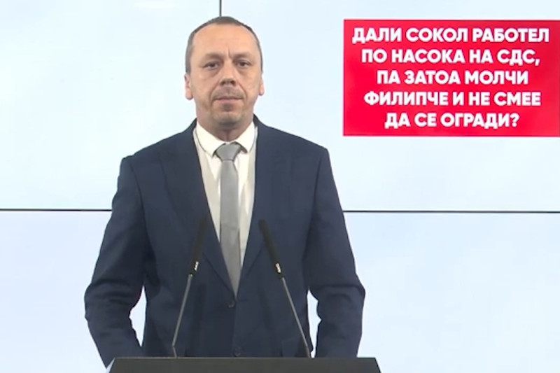 Дали Сокол работел по насока на СДС, па затоа молчи и ФИЛИПЧЕ и не смее да се огради? Се плаши ли СДС и Венко Филипче од Филип Андов Сокол, и тоа што тој може да каже пред органите на прогонот?, овие прашања денеска од партиската говорница ги постави пратеникот на ВМРО-ДПМНЕ, Бране Петрушевски.