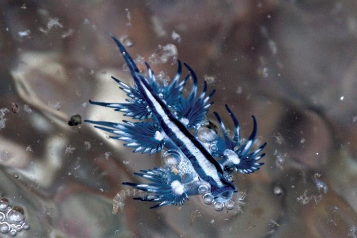 Забележано во водите на Шпанија – кај Аликанте, Балеарските Острови и Торевиеха, и иако изгледа како суштество од бајка со својот речиси „митски“ изглед, ова морско животно, сепак, е високоотровно, способно да предизвика болни убоди, објавува „Дејли дајџест“ (Daily Digest). „Глаукус атлантикус“ е полжав-гастропод којшто нема заштитна школка во својата возрасна фаза. Се храни со токсични организми и ги складира нивните клетки (нематоцисти) како свое средство за одбрана. Неговото мало тело и прилагодливата воздушна ќеса му овозможуваат да лебди во горниот слој на морето.