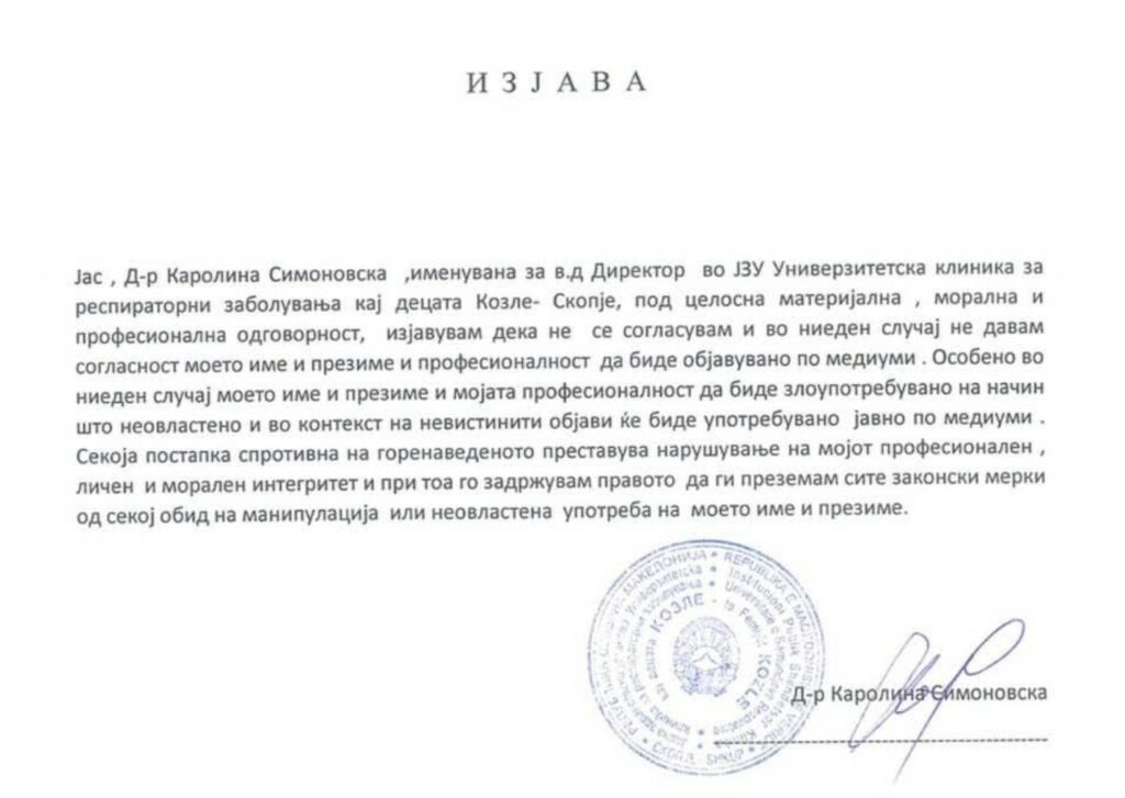 Денеска на нашите телефонски повици не одговори директорот на онкологија, а потврда на информациите не сакаше да даде ниту директорот на Фондот за здравство, само ни соопшти дека утре ќе држел пресконференција.
