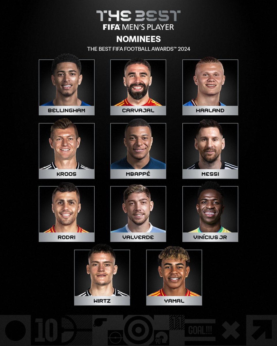 Како што соопшти денеска ФИФА, меѓу номинираните за наградата „The Best Fifa Football Awards“ се и Дани Карвахал (Реал Мадрид), Ерлинг Халанд (Манчестер Сити), Федерико Валверде (Реал Мадрид), Флоријан Вирц (Баер Леверкузен), Џуд Белингем (Реал Мадрид), Килијан Мбапе (ПСЖ/Реал Мадрид), Ламин Јамал (Барселона) и Тони Крос кој играше за Реал Мадрид, но ја заврши кариерата на крајот од минатата сезона. Единствениот кандидат кој не игра во Европа е Лионел Меси од Интер Мајами.
