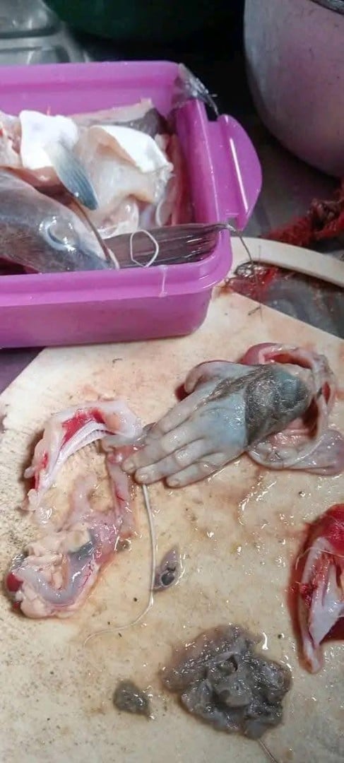 Некои корисници забележале парчиња крзно на раката, што сугерира дека рибата можеби ја проголтала раката на мал вид мајмун.