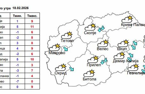 Според нив, утре во југозападните делови ќе има врнежи од дожд, а на планините и на некои повисоки места од снег.