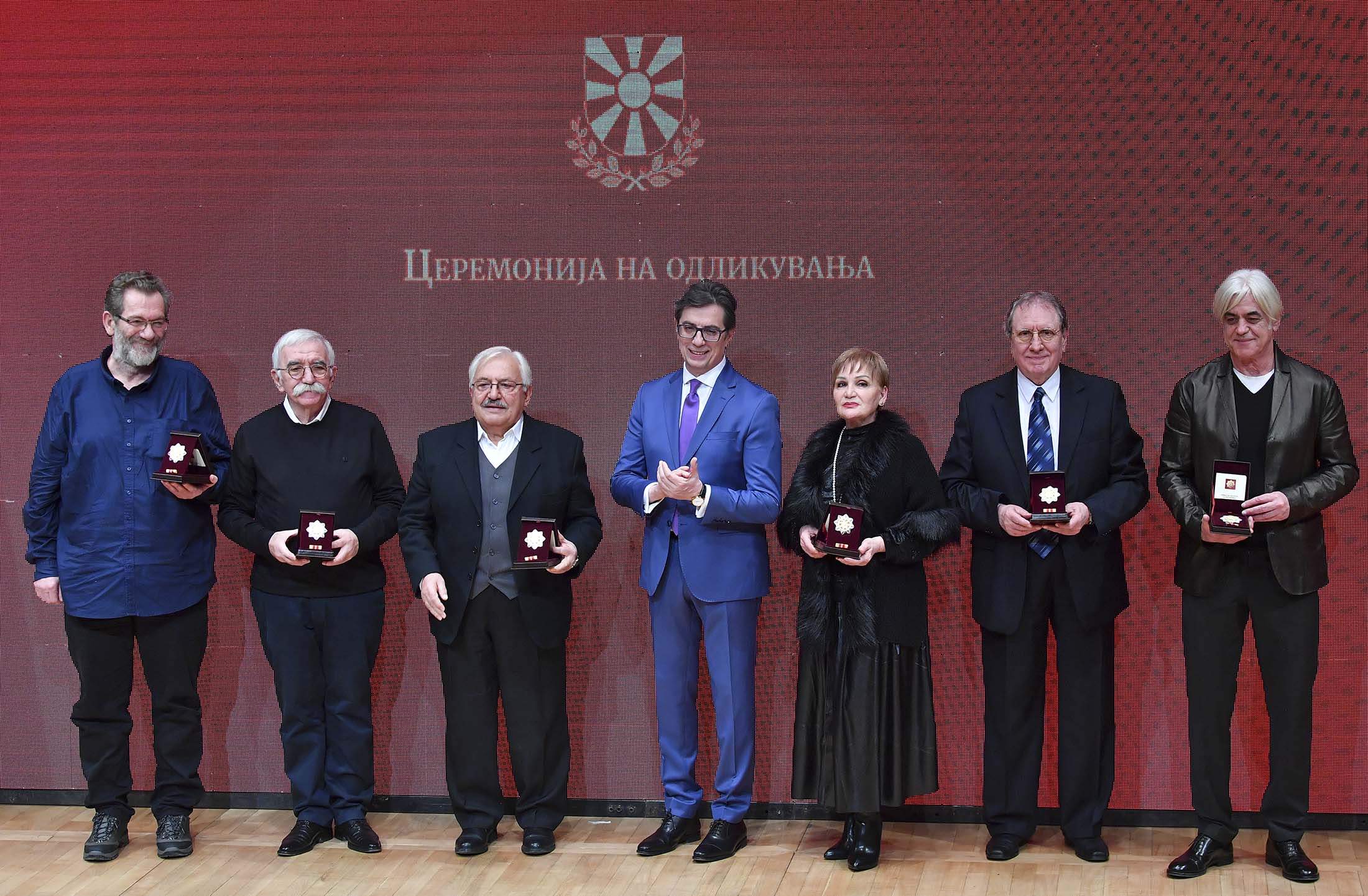 Актерите Бедија Беговска, Благоја Чоревски, Ѓокица Лукаревски, и Рефет Абази, музичарот Ристо Вртев, писателката Оливера Николова и режисерот Слободан Унковски добија орден за заслуги од Претседателот Стево Пендаровски, на свечена церемонија во Филхармонијата.